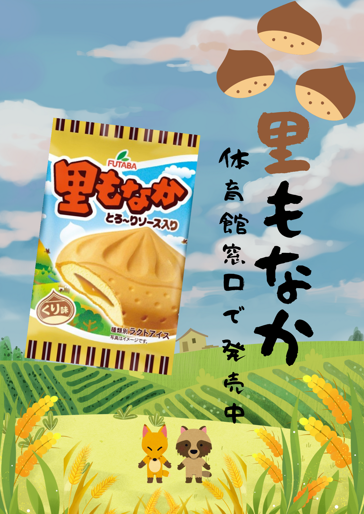 〇昔なつかしの里もなか!とろーり栗ソース入りのもなかアイスを三橋総合公園体育館で販売しています(1個150円)